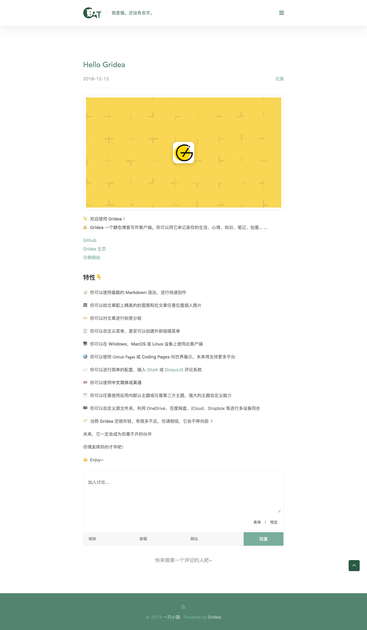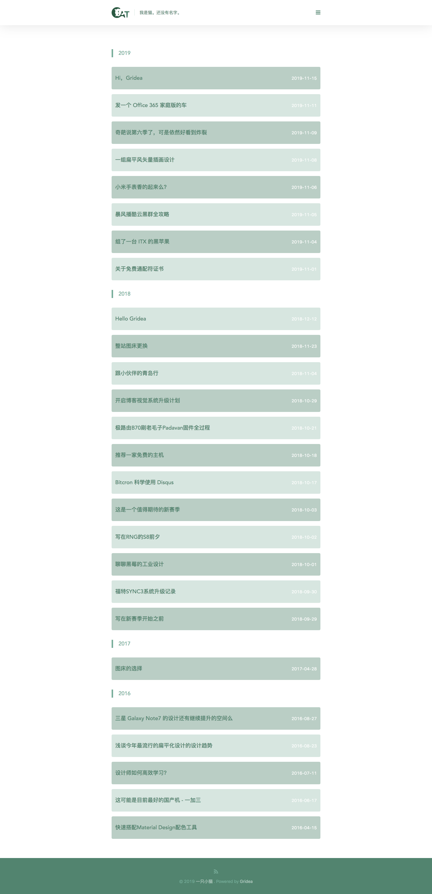 这是给一个朋友定制的主题。朋友提了一些需求,做完原型和飞机稿,看到效果感觉还挺满意的吧。想到最近折腾的 Gridea 非常好用,就用它实现了。后期应该还会继续优化。